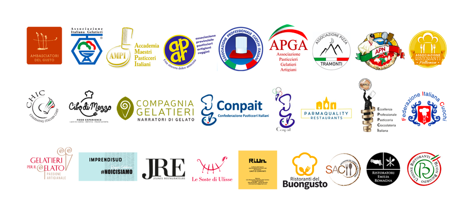 A firmare il nuovo appello sono le seguenti realtà Associative presenti nel Paese: ADG, Associazione Italiana Ambasciatori del Gusto; AIG, Associazione Italiana Gelatieri; AMPI, Accademia Maestri Pasticceri Italiani; APAR, Associazione Provinciale Pasticceri Artigiani Reggini; APCI, Associazione Professionale Cuochi Italiani; APGA, Associazione Pasticceri Gelatieri Artigiani; APN, Associazione Pizzaiuoli Napoletani; APT, Associazione Pizza Tramonti; Associazione Ristoranti Follonica; CHIC, Charming Italian Chef; Cibo di Mezzo; Compagnia Gelatieri; Conpait, Confederazione Pasticceri italiani; Conpait Gelato; Consorzio Parma Quality Restaurants; EPPCI, Eccellenza Professionale Pasticceria Cioccolateria Italiana; FIC, Federazione Italiana Cuochi; Gelatieri per il Gelato; Imprendisud Gruppo Ristorazione; JRE, Jeunes Restaurateurs Italia; Le Soste di Ulisse; Ri.Un., Ristoratori Uniti; Ristoranti del Buongusto; Ristoratori del Sannio e alto Casertano; Ristoratori Emilia Romagna; Unione Ristoranti del Buon Ricordo.