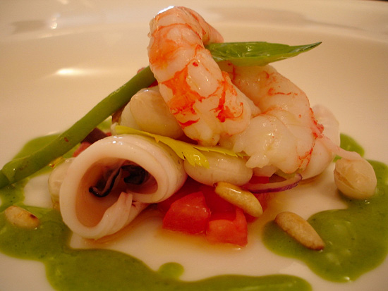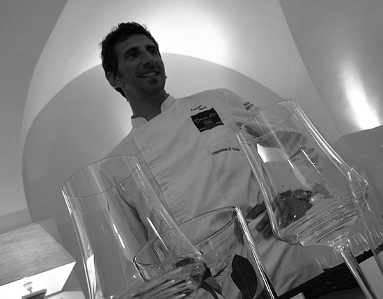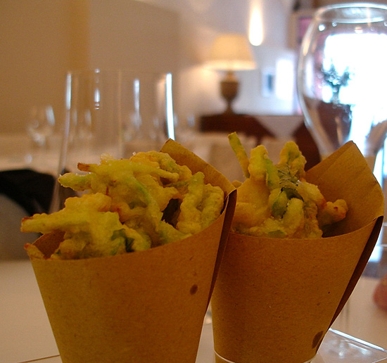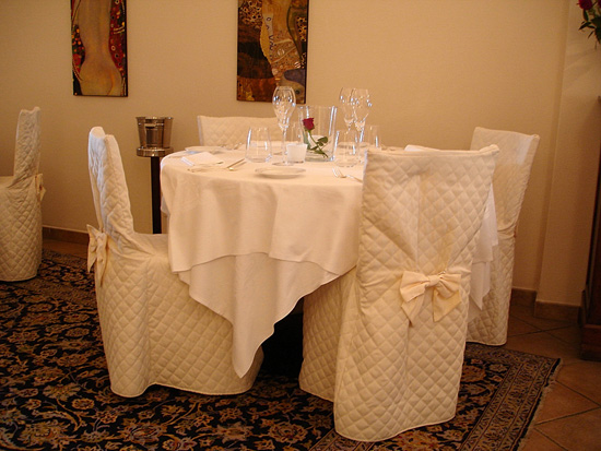 Senza troppi slanci creativi, senza far troppi compromessi sul prezzo, non sottomedia sia sui menù che sulla carta, e ancor meno sui vini, ricaricati sopra media ma dove l’importante collezione di Champagne d’autore ricalca l’impronta edonista del locale e del suo proprietario, un uomo che ama le belle cose della vita, non importa se costose, ma belle ; basta parlarci per capire che tutto va in quella direzione, dalla raffinata mise en place, dal candore delle pareti al calore dell’illuminazione indiretta, dal sorriso coinvolgente della moglie, Alessandra, che lo asseconda gentilmente in sala.