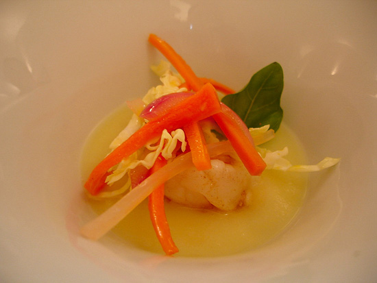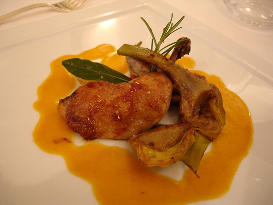 Meno narcisismo nell’apparecchiatura che potrebbe creare qualche imbarazzo ai commensale, i piatti ora sono meno ingombranti che nel recente passato e le temperature e le sintesi di sapore sono più pronunciate e concentrate, anche in piccolo spazio. Le sapidità sono naturali, i toni amari primari, le dolcezze più gradite dei toni acidi. L’insegna, retaggio di una scelta non sempre perseguita, perchè qui c’è più di dolce che agro, anche se in qualche angolo un guizzo di tono agro arriva a compensare una cucina che, volendo cercare un paragone allargato, è comunque più vicina alle dolcezze Catalane che alle punte di freccia Provenzali.