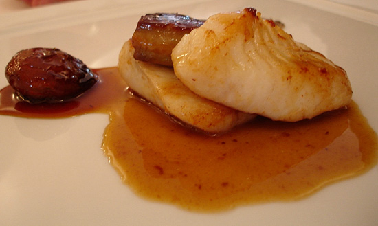 Decisamente più equilibrato il classico abbinamento rombo-foie gras- scalogno in agrodolce al Passito, profumo e crunch di sale alla vaniglia