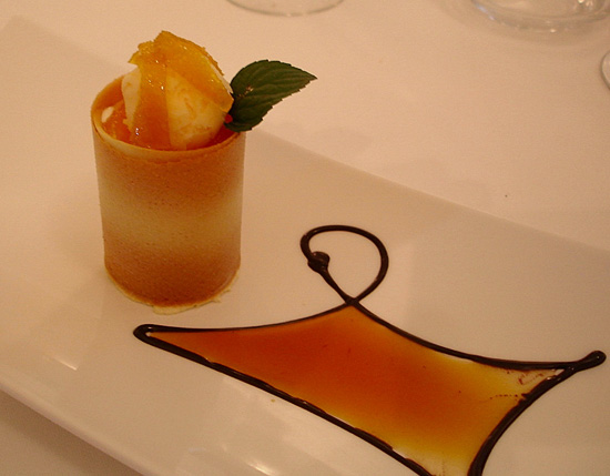 Perfetta la fantasia invernale di agrumi, mandarini, pompelmo, arancio limone... in diverse consistenze ed in impeccabile cialda friabile. Applausi.