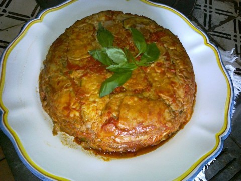 Mia Mamma la faceva praticamente uguale ed io continuo a farla almeno due-tre volte l’anno. Lei era di Tropea ma la facevano solo nella sua famiglia (Paparatti un tempo Baroni di Mannarino a Rosarno). Gli altri tropeani manco sanno cosa sia e ci eravamo sempre chiesti la sua origine. Chissà come sia arrivata da Padula a Rosarno/Tropea! Però nella nostra su vari strati di zucchine, sugo, provola silana, pecorino del Poro, aggiungiamo anche strati di patate a fette non troppo sottili e fritte. Inoltre a metà strati aggiungiamo degli spicchi di uovo sodo e copriamo l’ultimo strati di sugo con due tuorli d’uovo per creare una deliziosa crosticina. Il giorno dopo quella rimasta la frantumiamo con la forchetta e ci condiamo le mafaldine (mafaldine alla parmigiana): buonissime anche queste!