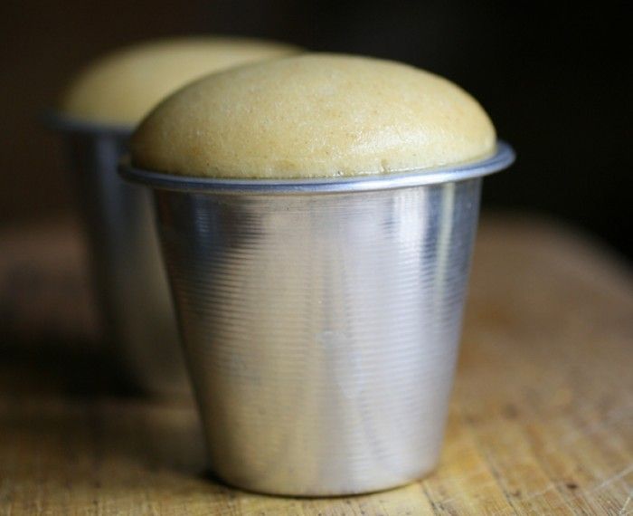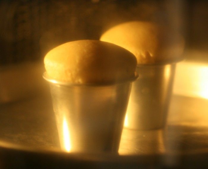 Una volta che avrete riempito tutti gli stampini (con queste dosi ve ne dovrebbero venire una dozzina, ma se fossi in voi per sperimentare dimezzerei) lasciateli in forno con la luce accesa a lievitare fino a quando l’impasto non raggiungerà abbondantemente il bordo. Ci vorranno svariate ore, quindi cominciate a impastare al mattino presto.
