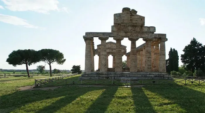 Paestum, uno scorcio dei templi 23/4/2011 Torna a: La ricetta sulle Strade della Mozzarella: la pizza granata di Paestum Paestum, uno scorcio dei templi← Precedente