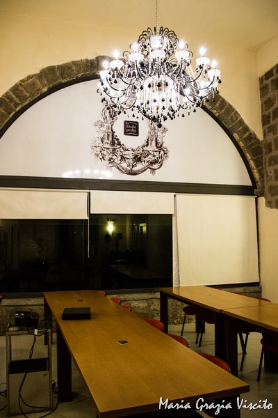 accoglienza alla scuola: arriviamo da varie parti di Italia e visitiamo questo ex convento, che ha dei laboratori all’avanguardia, delle attrezzature i e spazi notevoli. Perché la parte tecnica serve ma se fuori c’è un orto meraviglioso e un panorama fatto di un centro storico incantevole, aiuta.
