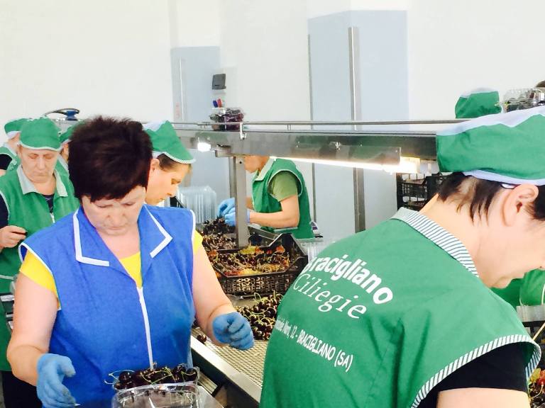 Se le “spernocchie”, le ciliege migliori della zona arrivano come appena colte sulle tavole degli italiani, il merito è dei “combattenti” di Angela: Silvia De Caro e Rosa Settembre per il coordinamento del reparto; Gino Cerrato, addetto al muletto e al controllo; Cristina Ferrentino, la magazziniera; Franco Petrosino, tecnico, contabile e braccio destro di Angela insieme al marito di quest’ultima Gioacchino Liguori, infermiere di professione che non rinuncia mai alla partecipazione di un rito magico e ancestrale.