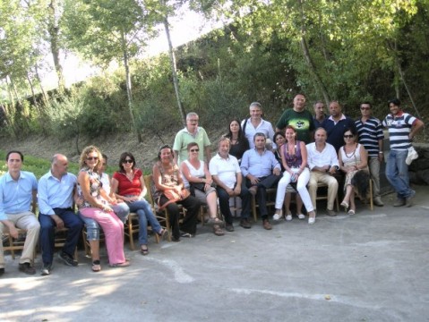 Il gruppo di studio dello Stapa Cepica di Napoli nell'azienda Sylva Mala con i produttori guidato da Franco Del Vecchio (secondo seduto da destra) e Giovanni Pirozzi (quinto in piedi da destra) (Foto di Miriam Siglioccolo)