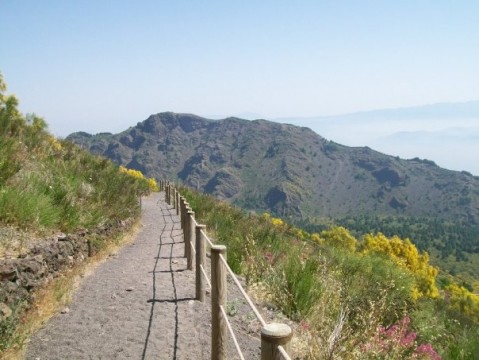 E poi le ginestre, in piena fioritura e dal profumo distinto e selvatico, la terra lavica prima sabbiosa poi sempre più compatta e nera, siamo a più di mille metri in area protetta, il commento di qualcuno è che tutto ciò è ancora poco conosciuto dal turismo nostrano, mentre si incrociano gli accenti stranieri di altri escursionisti. La guida forestale spiega la storia eruttiva del vulcano più famoso al mondo, alle nostre spalle il Monte Somma, difficile immaginare che questo placido gigante addormentato custode dei Comuni abbarbicati alle sue pendici un giorno possa reagire con violenta devastazione.