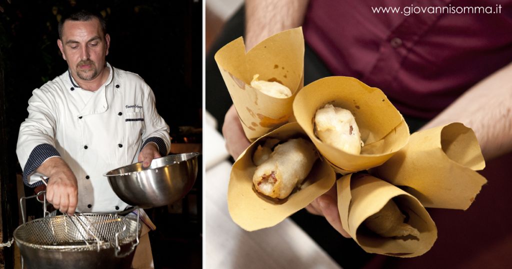 Nella zona 2, ovvero alla braceria e friggitoria, è stato possibile degustare ‘O cuoppo dell’osteria Al paese (Luca Ingenito e Gennaro Vitale) abbinato ai Bianchi irpini (Cantine Faliesi) di Forino e la Salsiccia a punta di coltello con patate al rosmarino, piatto della tradizione proposto da Antonio Pepe del noto ‘O Cantarone (Sant’Egidio del Monte Albino) accompagnato da un Aglianico Colli di Salerno igt (Luna Rossa) di Giffoni Valle Piana.