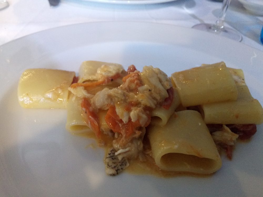 Mezzo pacchero con cernia e datterini gialli. Piatto classico della cucina nostrana, che nella sua semplicità denota una cifra stilistica molto indovinata.