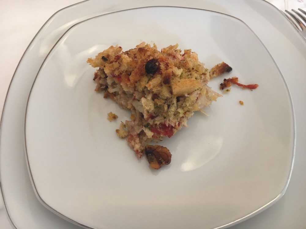 Anche i secondi sono all’insegna del pane: peperone ripieno di mollica usata anche per saltare il baccalà, le polpette e ortaggi fritti con protagonista il cavolfiore.