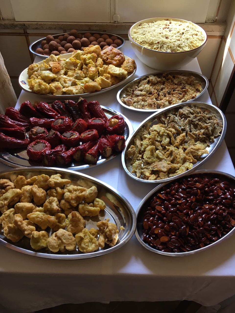 Un insalata di arance apre la strada ai dolci: mandorle cotte nel vincotto, riso dolce cotto nel latte, torta alla crema e il re della festa il Calzone.