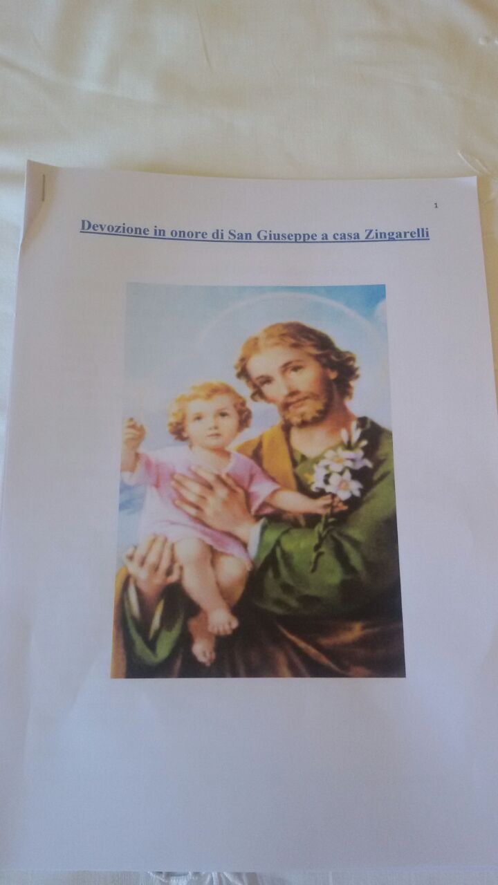 Detto anche S.Giuseppe lavoratore per dare rilievo (nella festa del primo Maggio) all’artigiano che che come falegname ha provveduto ai bisogni di Gesù e Maria. Complimenti ai suoi gentili ospiti che per l’occasione hanno imbandito una tavola degna di un Re.Penso che il tarallo semidolce e sopratutto il calzone dolce valgano il viaggio per cui ,nel caso che i signori Zingarelli ,il prossimo anno dovessero trovarsi a corto di chi invitare come San Giuseppe,mi offro volontario con mia moglie anche se mi chiamo Francesco sposato con Carolina e non con la Madonna.Ad ogni buon conto fa sempre piacere quando tradizioni secolari vengono mantenute con tanta devozione.FM.