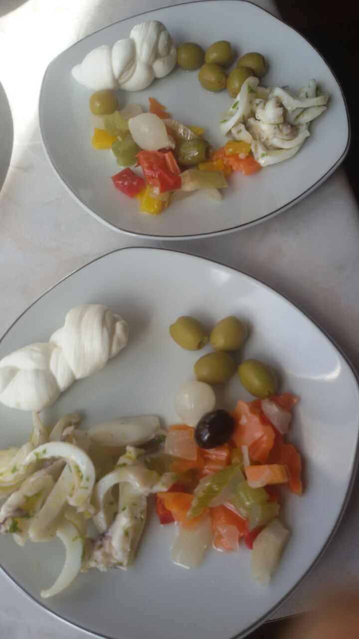 Il convivio si apre con il tarallo semidolce per poi proseguire con un piccolo antipasto a base di giardiniera di verdure fatta in casa.