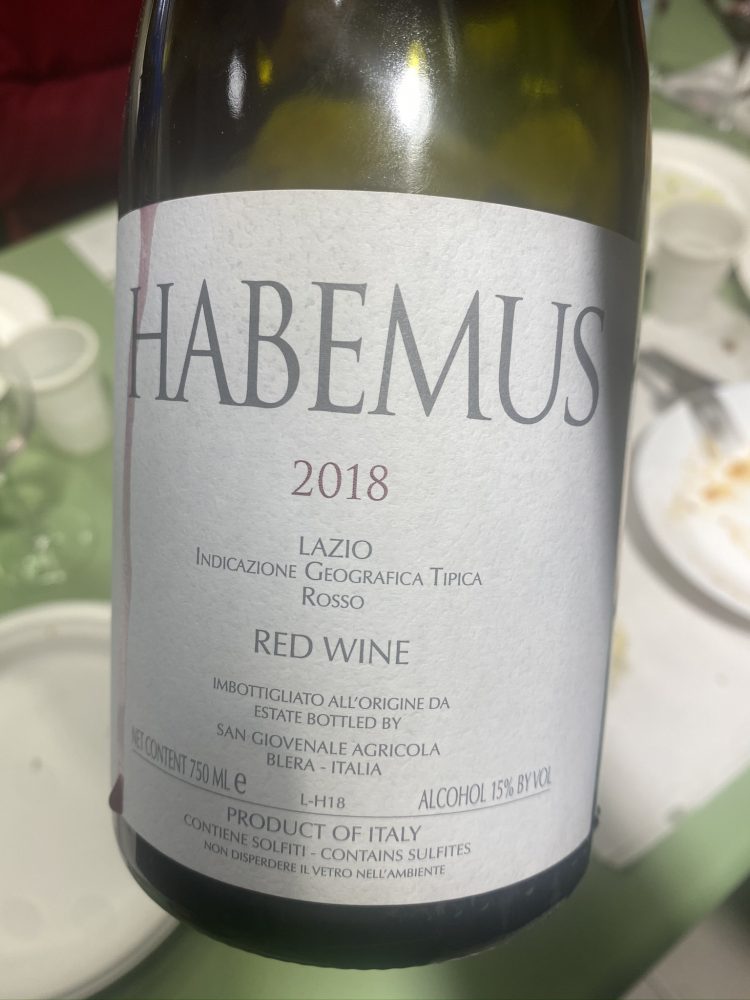 Per chiudere il cerchio, si è deciso anche di organizzare, prima di partire, una colazione in frantoio con un’altra eccellenza del territorio: Marco Ceccobelli de Il Casaletto di Grotte Santo Stefano, una delle tre chiocciole Slow Food del viterbese. Marco alleva maiali allo stato semi-brado e utilizza le carni per produrre una coppa e un prosciutto da perderci la testa: rustico, fibroso, perfetto da “schiaffare” su di una fetta di pane intinta nell’E.V.O. Proprio con queste pietanze – e con un boccone mattutino di trippa – assaggiamo, alle nove e mezza, al posto del caffè, l’Habemus Etichetta Bianca: vino di massa e d’imponenza, da pranzo luculliano più che da colazione campestre, sicuramente impegnativo, ma capace di fare la sua porca figura anche in questo frangente. Scuro e compatto nel colore, sfoggia un naso a metà tra Rodano e Centro Italia, imperniato sul frutto denso, avvolgente, incorniciato da cenni di garriga e spezie orientali. S’impone in bocca con la sua mole calibrata da discreta freschezza e da tannini fitti, che allentano la presa in un finale appena compresso da qualche traccia di spezia da rovere. E’ solo il punto di partenza – e non di arrivo – di un progetto in continua evoluzione, che si espanderà nei prossimi anni con l’introduzione di nuova gamma di etichette da singolo vitigno.