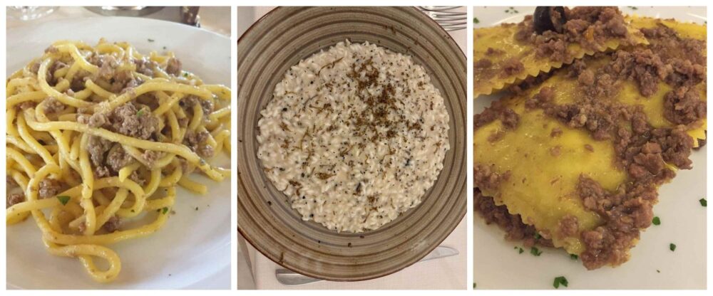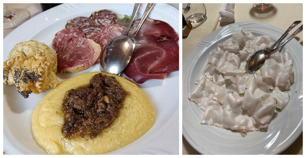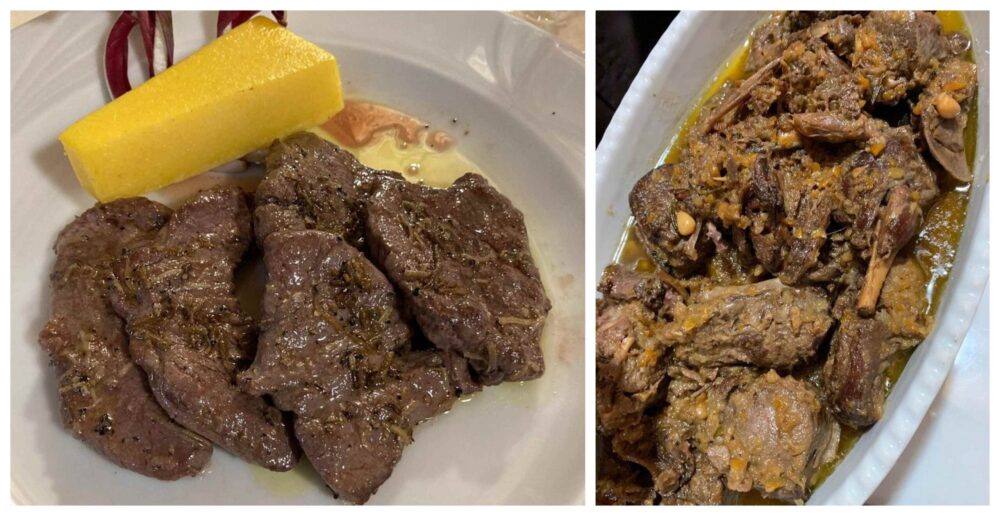Il menu si muove con una coerenza rara nel panorama attuale. Non c’è l’ansia di reinventare la tradizione, ma piuttosto il desiderio di preservarne la grammatica gustativa. Lepre, cinghiale, capriolo e selvaggina da piuma attraversano la carta dagli antipasti ai secondi, costruendo un percorso che richiama la cucina di collina nella sua forma più autentica. Preparazioni come la pernice rossa con “poenta onta” o i bocconcini di cinghiale al ginepro restituiscono una dimensione arcaica del gusto, fatta di sapori profondi e cotture rispettose, lontane da ogni tentazione di alleggerimento forzato. Nei primi piatti emerge una tecnica solida e una chiara lettura del territorio.