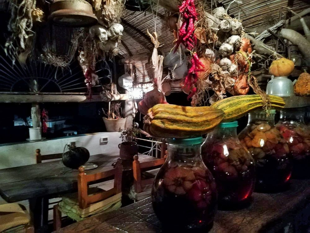 Tovaglie diverse, sedie pure, candele sciolte a far compagnia alla tavola imbandita per i tavoli interni mentre per l’esterno, contenitori in vetro conservanti peperoni sott’aceto, collane di agli intrecciati, peperoncini e chi ne ha, più ne metta, per far si che l’atmosfera sia unica ed introvabile.