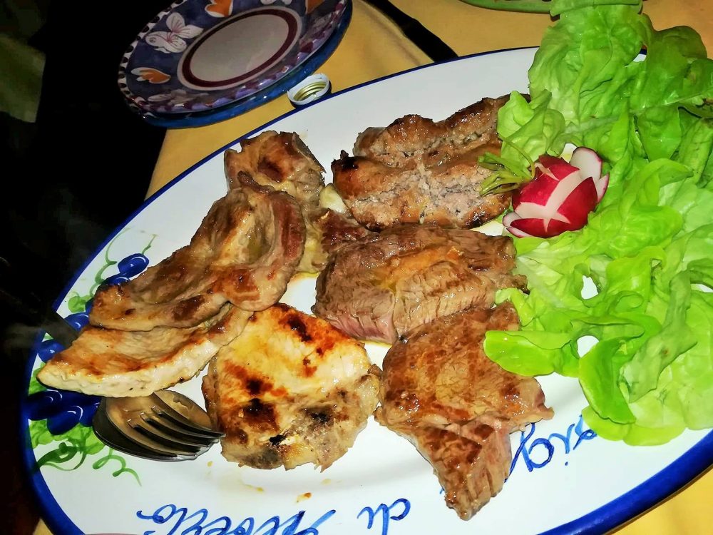 Si continua con la carne alla brace, scelta questa che si allontana dal tanto e famigerato coniglio: c’è il controfiletto, la carne di maiale e la salsiccia.