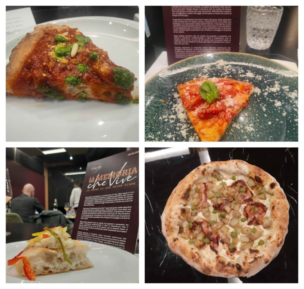 Protagonista del percorso è la Margherita Rinascita preparata con passata di pomodori datterini dell’azienda Diana 2.0 di Villa Literno, coltivati con metodi biologici e a basso impatto ambientale, e con la mozzarella di bufala campana Dop del Caseificio della Cooperativa sociale “Le Terre di Don Peppe Diana – Libera Terra” di Castel Volturno, primo bene campano prodotto su terreni confiscati alla camorra.  La pizza si presenta ben cotta, molto profumata, ben alveolata, cornicione morbido e morso ben farcito e scioglievole.