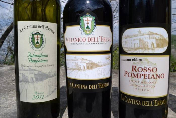 Poco distanti ci sono i 4 ettari di vigneto dei quali si occupa il padre superiore, Giuseppe, che si avvale della collaborazione dell’enologo Carmine Valentino, subentrato ad Amodio Pesce dopo la sua scomparsa. Si allevano falanghina, pedirosso ed aglianico e le viti cominciano a germogliare al tiepido sole primaverile. Le bottiglie prodotte oscillano annualmente tra 8 e 10 mila ed i vini ottenuti raccontano con sincerità i ritmi lenti rispettosi della natura e del silenzio. Le etichette sono tre sotto il marchio La Cantina dell’Eremo e sono una falanghina igt pompeiano, un rosso pompeiano ed un aglianico riserva. Per acquistarli è indispensabile recarsi all’Eremo nella vecchia erboristeria dove sono in vendita anche i barattoli di miele di padre Giovanni, le confetture, la grappa al miele e le erbe officinali. E vale sicuramente la pena spingersi in quest’angolo di Paradiso per godere di questo luogo fuori dal tempo.