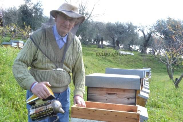 Toglie via il suo vecchio grembiule da falegname per indossare cappello e rete da apicoltore e con grande energia, nonostante i 78 anni, ci mostra le sue arnie, realizzate personalmente a mano, come tutti gli attrezzi utilizzati per la produzione del miele.