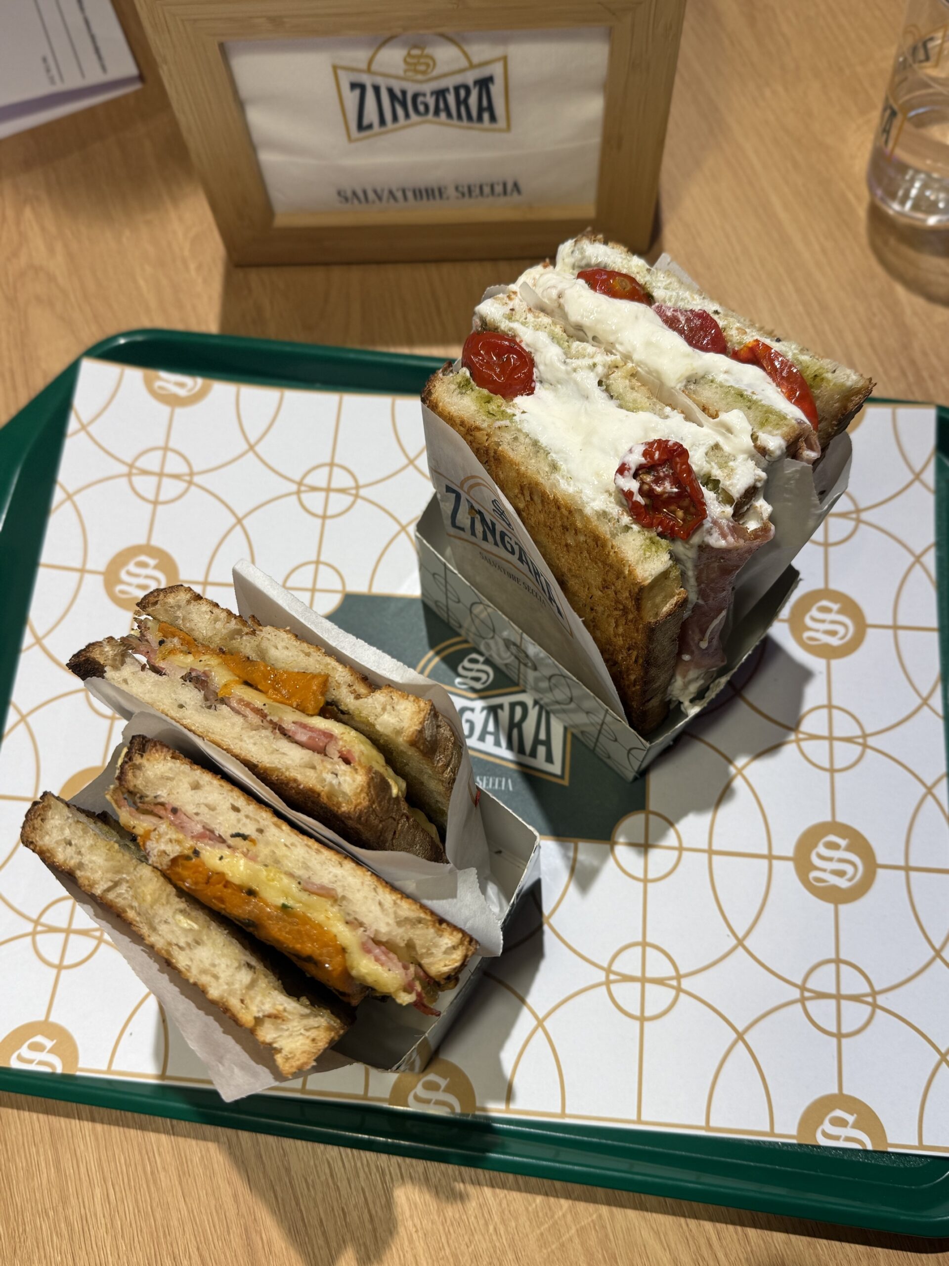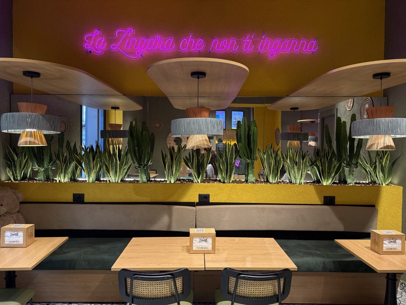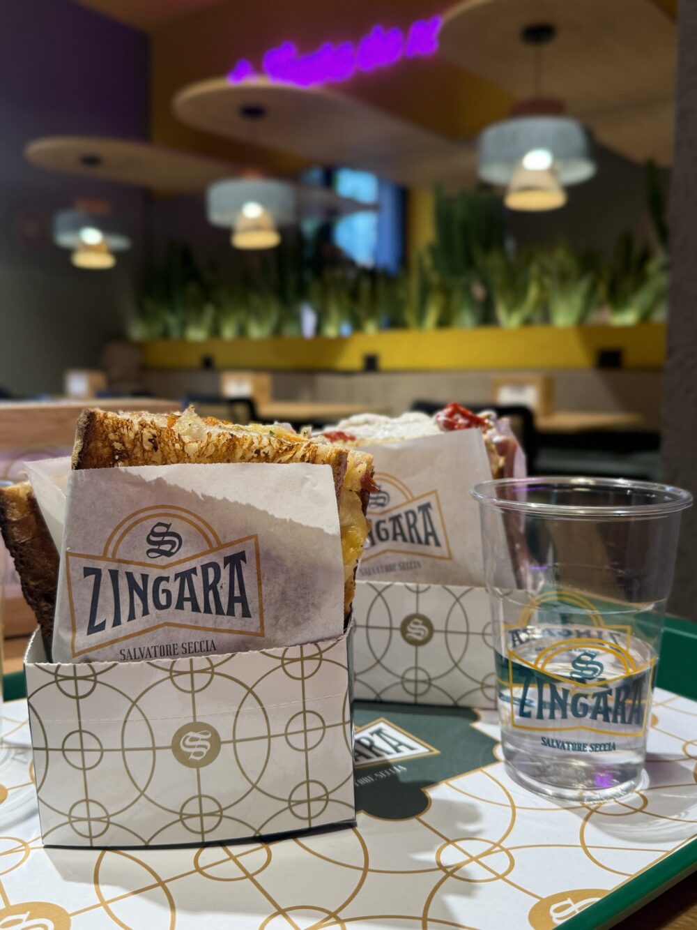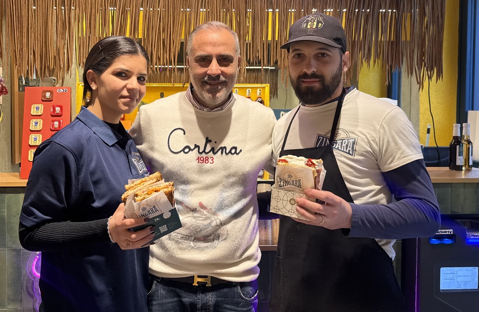 Il prodotto resta il centro. La Zingara tradizionale mantiene gli elementi fondamentali della ricetta originaria: pane croccante tostato, prosciutto crudo di Parma, fior di latte, pomodoro cuore di bue, insalata iceberg e maionese. Accanto alla versione classica, il format propone varianti più strutturate come l’A’mbuttunata, preparata con peperone imbottito, carne macinata, olive, capperi e pecorino; la Carciofina, a base di crema di carciofi, crudo, fior di latte e carciofi grigliati; e la Tricolore, che unisce prosciutto crudo, stracciata, pomodorini semi-dry e pesto di basilico.