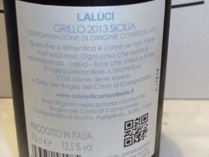 Lalùci Grillo Sicilia Doc 2013 | Voto 85/100, winner a Radici del Sud