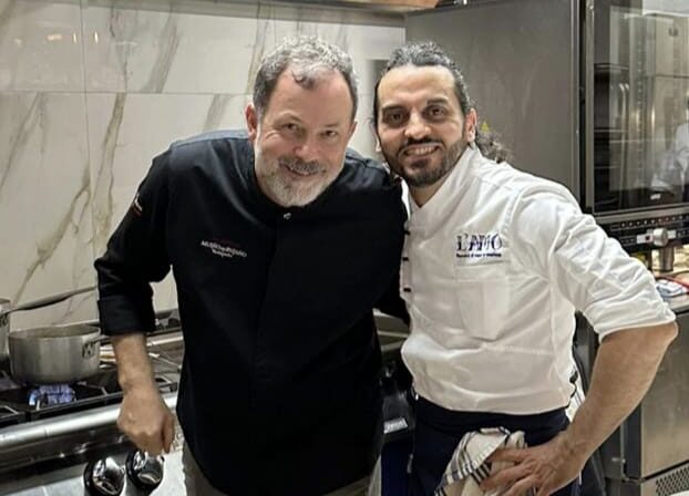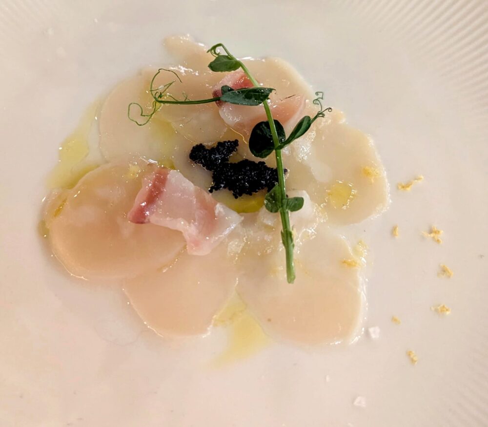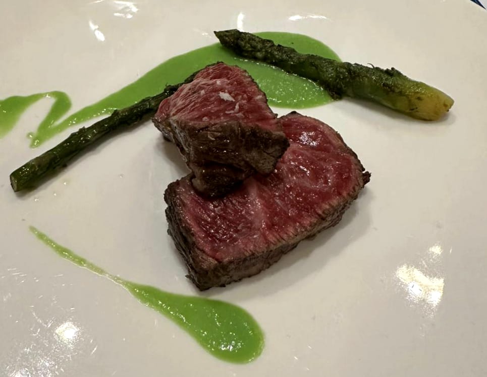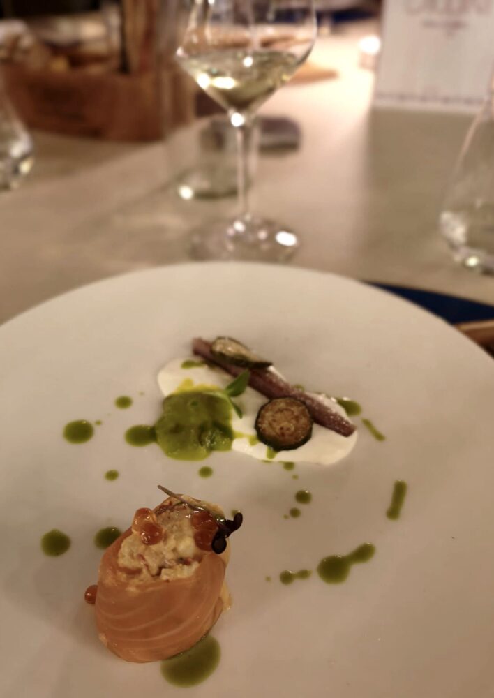 E proprio questo hanno raccontato i piatti, tradizione galiziana (mare e terra) contaminata dalla tradizione campana, ma con una personale visione moderna: il carpaccio di capasanta di O Grove e lardo di maialino ibérico, l’involtino di salmone marinato agli agrumi con ensaladilla di crostaci e peperoni del Bierzo e la sarda del Cantabrico con zucchine, burrata y guacamole. Anche qui, una Galizia mista alla Campania che vince con capellaccio con ragú bianco di maialino ibérico demi glaces e salsa di lamponi ed una pregiatissima Waguy spagnola con asparagi al burro.