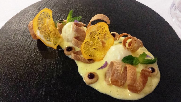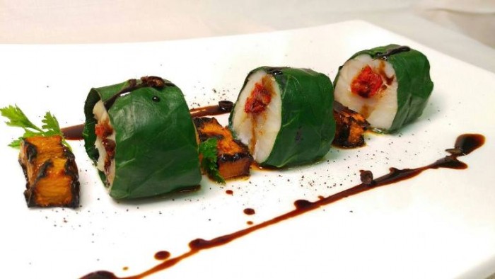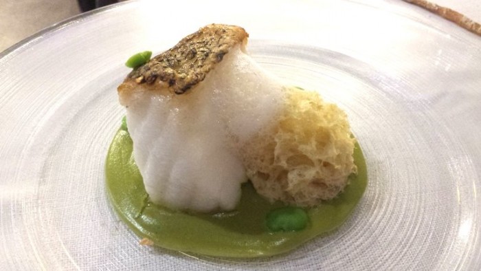 Invece nell’ambito dei secondi di mare si può assaggiare il sushi di baccalà, interpretazione mediterranea di una preparazione tipica giapponese, o il merluzzo ‘Mero’, una specie proveniente dalla zona Antartica, su base di vellutata di fave cotte e crude, lardo, sentore di rosmarino e cannella, servito con spugna di cipolla ramata e aria al pecorino.
