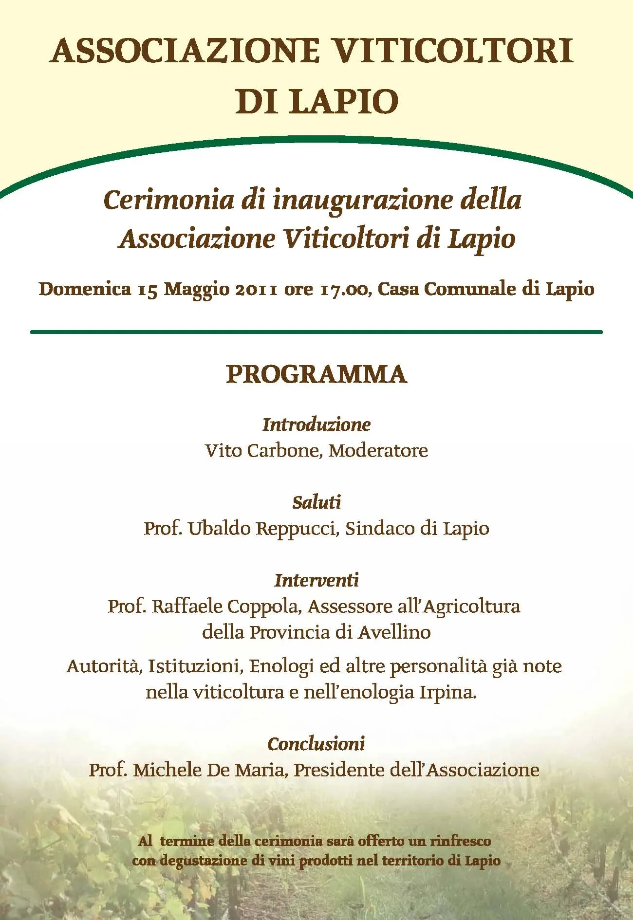 Torna a: Lapio, 15 maggio: nasce l’Associazione Viticoltori di Lapio