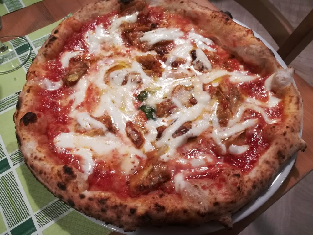 Ordiniamo una Parmigianella con appunto la delicata Parmigiana di Melanzane fatta nel pomeriggio, e una Pizza con Porcini e la Porchetta artigianale che non presenta un eccesso di spezie le quali potrebbero sormontare i sapori autentici e soprattutto potrebbero dar fastidio alla digestione. I profumi sprigionati dalle pizze sono davvero invitanti e le papille gustative confermano quella bontà di cui l’olfatto ha cominciato a dare i primi input. Alcuni pezzi di cornicione mangiati senza condimento rivelano ancor meglio il buon sapore e la leggerezza dell’impasto.