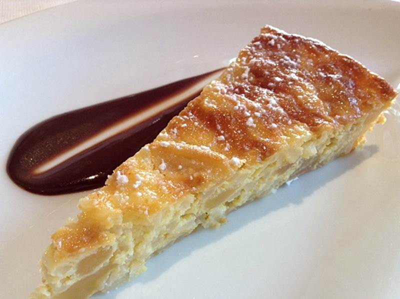 Antica osteria Magenes, Barate di Gaggiano, torta di riso con salsa al cioccolato nel locale recentemente insignito della Corona Radiosa