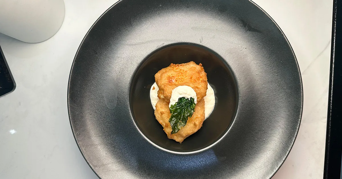 Adagiare alla base del piatto la fonduta ed al di sopra lo gnocco fritto. Servire.