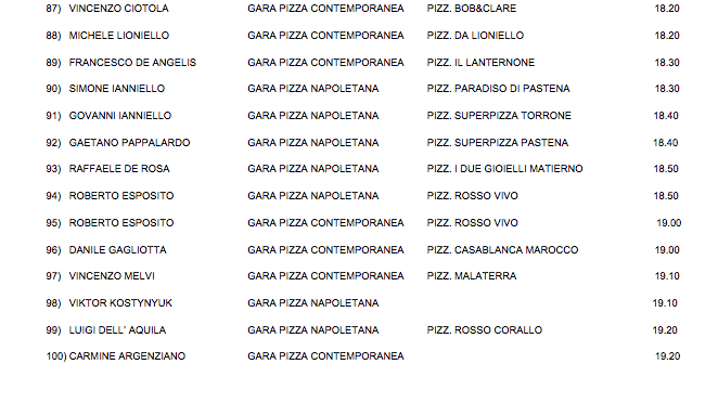 Infatti come potete notare dall’ elenco pubblico nel sito www.manidoro.pizza nella sezione news, le iscrizioni hanno raggiunto l’ obiettivo prefissato, precisamente ci sono 100 iscritti : “I Magnifici Cento” che si sfideranno a colpi di farina nella sala “Le Terrazze” della Mostra d’ Oltremare a Napoli. Pizzaioli provenienti da ogni posto della Campania, da diverse località italiane e non mancano le iscrizioni d’ oltrefrontiera come pizzaioli che provengono da Casablanca, Ucraina, Francoforte ma tutti uniti da un’ unica passione: LA PIZZA