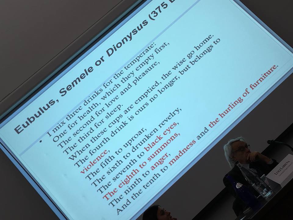 Una meravigliosa attività di indagine e ricerca scientifica quella del Centro interdipartimentale di Studi storici e giuridici sul mondo antico ‘V. Arangio-Ruiz’ e del Consorzio Interuniversitario G. Boulvert quella di LAWINE, simposio interdisciplinare sul valore sociale e giuridico del vino dalla classicità ai giorni nostri. La presenza, lo sviluppo, la diffusione del vino, rappresenta uno dei fattori commerciali e dei processi di contaminazione culturale del Mediterraneo. Nel mondo antico il vino ha da sempre rappresentato un argomento giuridicamente polivalente, sospeso in un rapporto tra positività e negatività, tanto a livello relazionale quanto sociale.