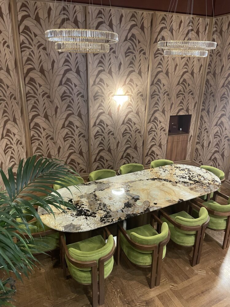 Layla è una boutique nel senso che si può acquistare anche il prodotto e portarlo via, gamberi rossi e scampi freschi, lavorati e confezionati in eleganti box ma anche caviale, olii di qualità e vini e champagne selezionati. Questo che è un ristorante di concezione contemporanea nato per i pranzi e le cene d’affari mette a disposizione un privé con un tavolo, in marmo Patagonia, per dieci dodici commensali pensato proprio per gli incontri di lavoro e sociali e poi un bancone dove accomodarsi su comodi sgabelli e godersi il servizio, come in un sushi bar, conversando piacevolmente di mare e di pesca con chi prepara i piatti.