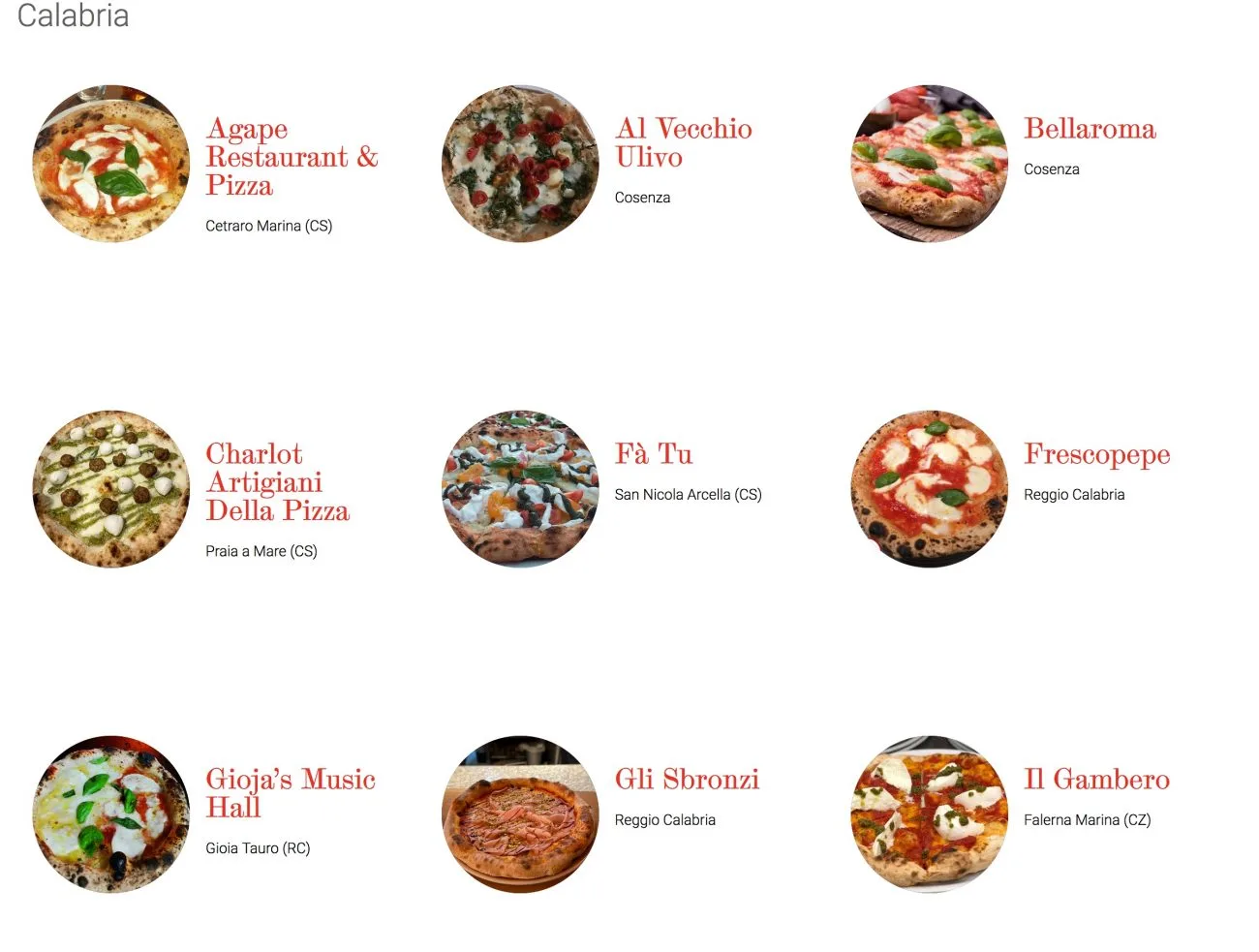 Calabria migliori pizzerie 9/1/2021 Torna a: Le 18 migliori pizzerie in Calabria selezionate da 50 Top Pizza Successiva →