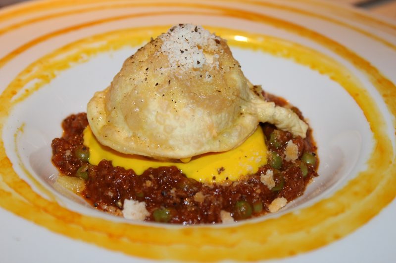 Scottata di tonno con alghe, salsa d’ostrica e sfoglia di pizza croccante. Cosa serve ad un piatto per essere eccellente? Una materia prima strepitosa, una salsa di accompagnamento leggera e briosa, i grassi giusti, ironia. La sintesi di un piatto eccellente, come questo. Presenti un piatto come questo tonno quando hai la piena consapevolezza dei tuoi mezzi, grande maturità e quando sei Massimiliano Alajmo. Mai provato un tonno più buono di questo.