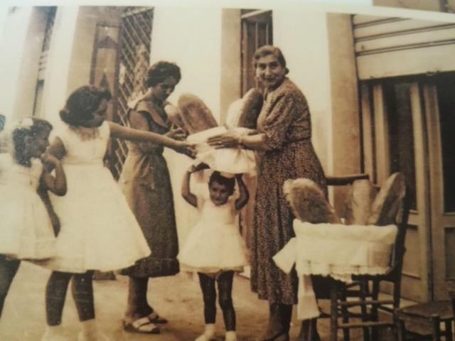 Donne e bambine cepranesi con le cantamesse davanti al vecchio forno (foto scattata tra gli anni Quaranta e Cinquanta