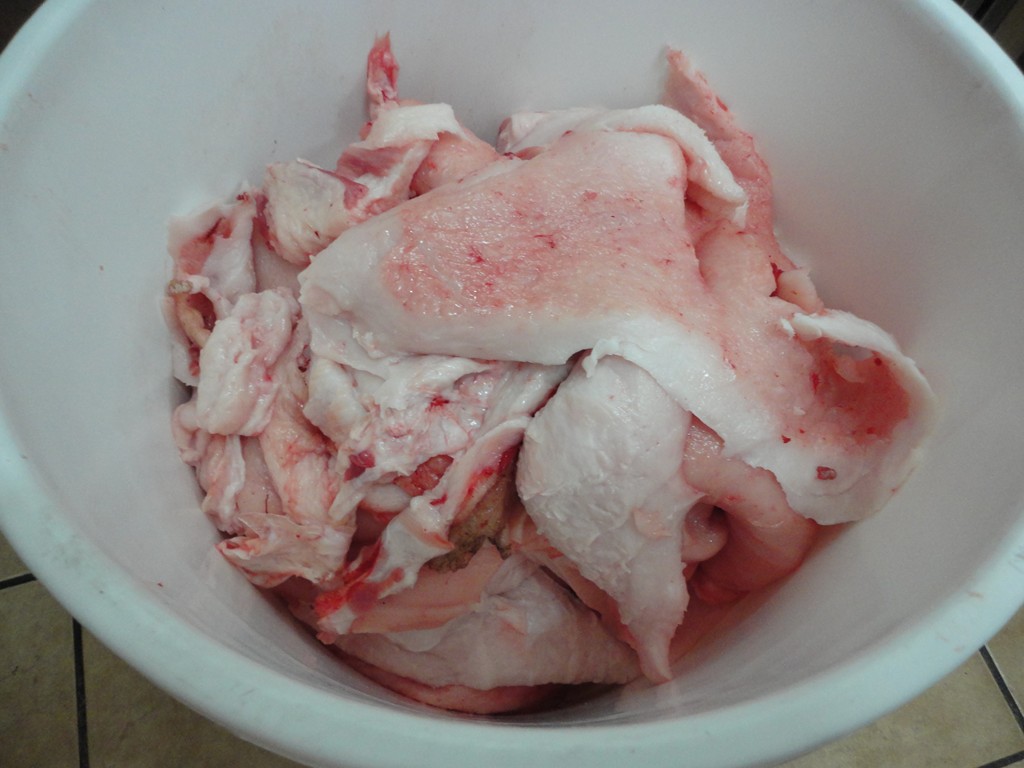 La spessa copertura di grasso dorsale rappresenta l’indice di tale maturità. Soprattutto quando il maiale che si macellava una volta era un prodotto completamente diverso da quello di oggi. Il maiale dei nostri nonni arrivava senza difficoltà ai 250 chili di peso (e magari li superava, tanto che spesso aveva difficoltà a reggersi sulle zampe), e uno dei parametri di selezione della razza, e di vanto tra le diverse famiglie contadine, era lo spessore del lardo dorsale, espresso in centimetri e qualche volta anche in decimetri. Il lardo e la sugna erano usati come grassi di cottura per eccellenza, perchè il lavoro manuale faticoso, la minor sedentarietà nello stile di vita dei nostri avi e lo scarso riscaldamento invernale nelle case, facevano si che tutto congiurasse nel richiedere un’alimentazione ricca di grassi .