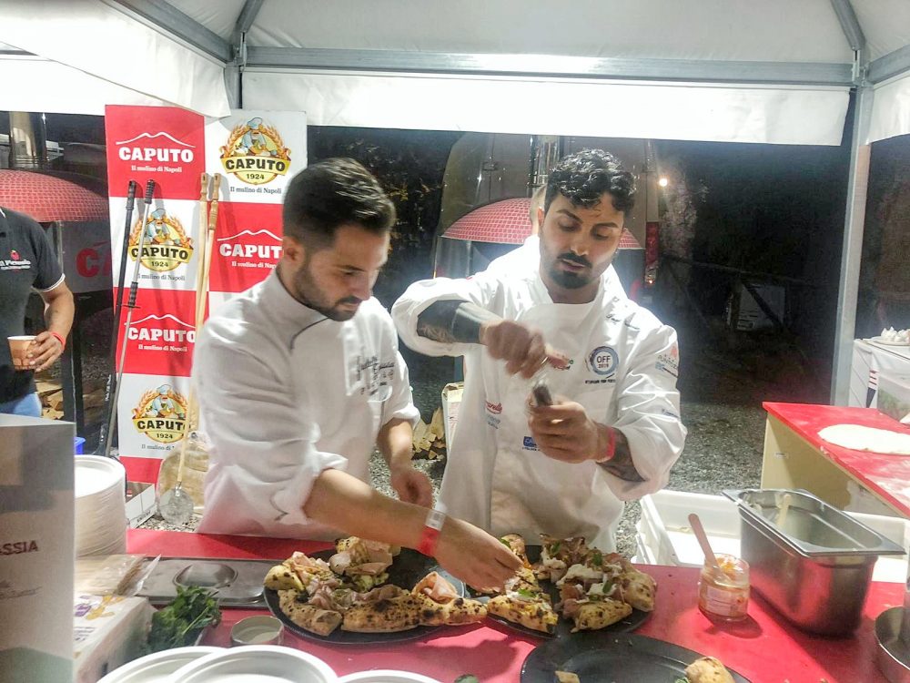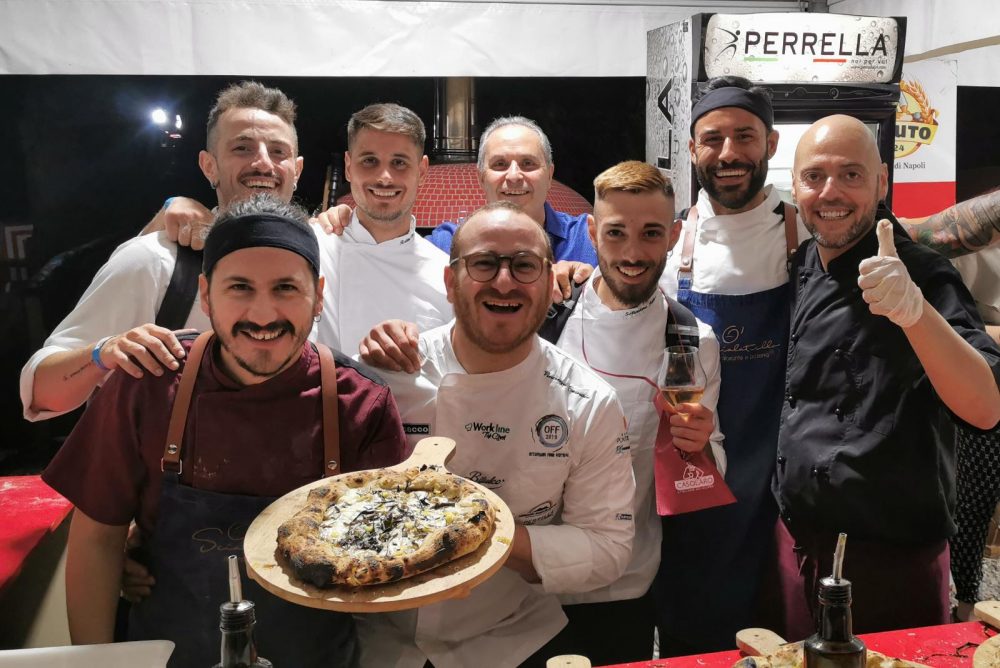 1) Luigi Cippitelli – Pizzeria Cippitelli – San Giuseppe Vesuviano, via Astalonga, 38. Due le proposte ad Off2019: la Marinara Vesuviana con pomodorino del Piennolo del Vesuvio DOP , origano del monte Sarno, aglio e olio extravergine del Vesuvio (Villa Dora Terzigno) e ” la Crisommola del Vesuvio” presidio Slow Food con mozzarella di bufala Campana DOP, Cipollotto dell’agro nocerino DOP, tonno alalunga , albicocche del vesuvio, cialde di provolone del Monaco DOP croccante, erba cipollina e olio extravergine del Vesuvio.