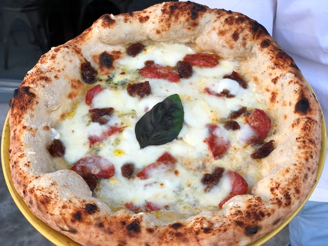 La Dolcenera: fior di latte misto bufala del Caseificio Golino di Marcianise (CE), Gorgonzola Dop, salsiccia di nero casertano, fichi sciroppati con peperoncino piccante con aggiunta di stevia