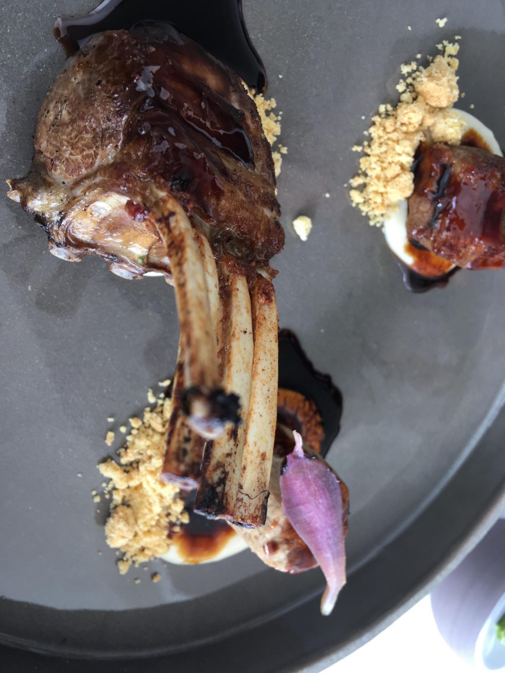 Secondi piatti di scuola francese, l’Agnello cotto in triplice servizio e la Gallinella scottata sulla pelle. Millimetrici.