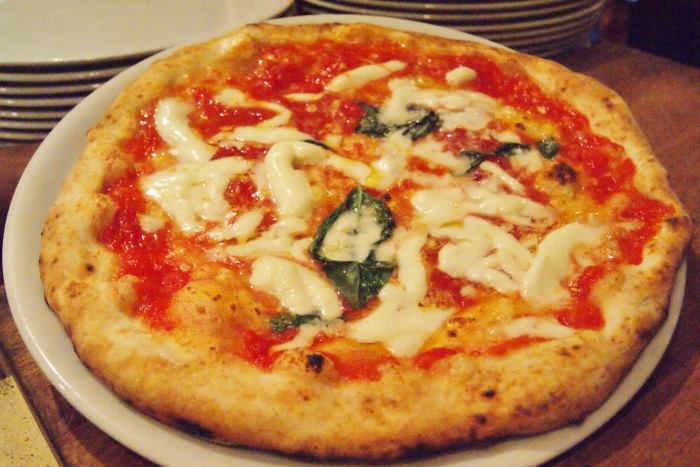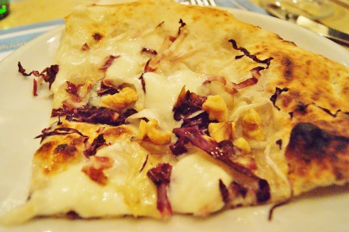 La seconda novità è una pizza con mozzarella di bufala, radicchio, gorgonzola e noci, ingredienti decisamente stagionali, un esperimento ben equilibrato tra sapidità, note dolci e croccanti. La degustazione si è conclusa sempre con la tradizione, una margherita con pomodorini del piennolo e mozzarella di bufala.
