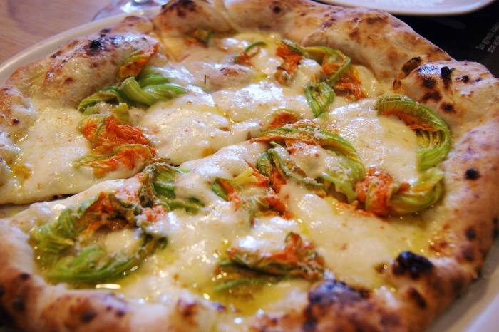 Si gioca in casa, in territorio regionale, con la pizza con ricotta, fiori di zucca e salame di nero casertano oppure con la pizza con fiori di zucca e conciato romano Le Campestre, dove il tono deciso del formaggio viene piacevolmente smorzato dalla dolcezza dei fiori.