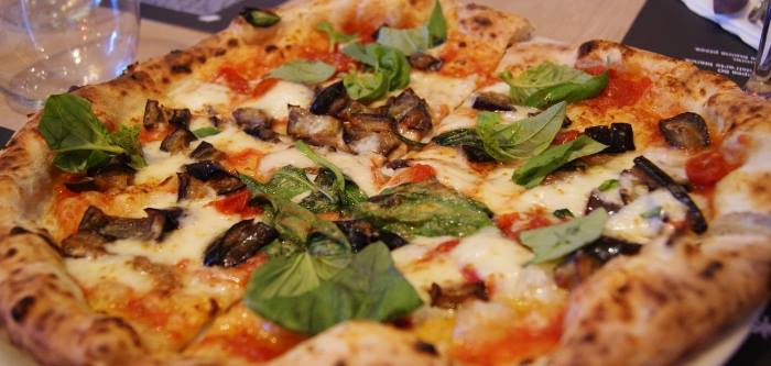 Tornando al tema verdure di stagione, due ottimi consigli sono la pizza con pesto di zucchine e prosciutto San Daniele e quella con melanzane e datterini di Montoro.