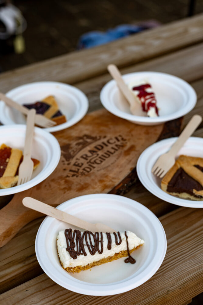Non mancano taglieri di salumi e formaggi accompagnati dal miele di produzione propria, birra artigianale e dolci preparati direttamente dallo staff, come cheesecake e crostate fatte in casa. È un’esperienza di gusto che racconta la stessa genuinità che si respira nel parco.