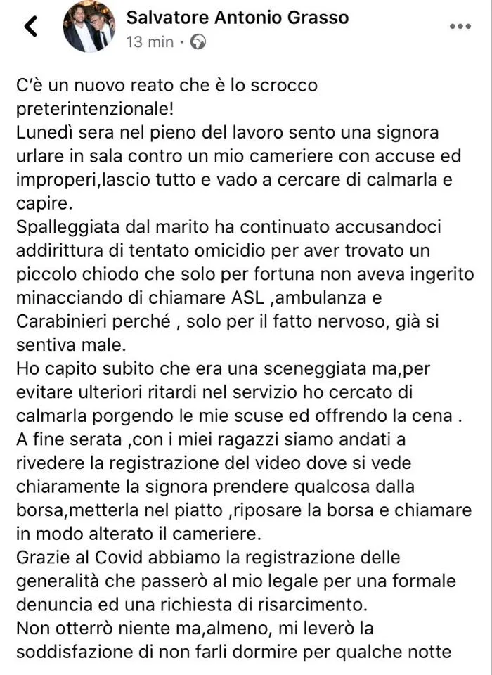 Salvatore Antonio Grasso 20/8/2020 Torna a: Le vie dello scrocco sono infinite: una signora mette un chiodino nel piatto per non pagare la cena da Gorizia 1916. Ecco come viene smascherata…