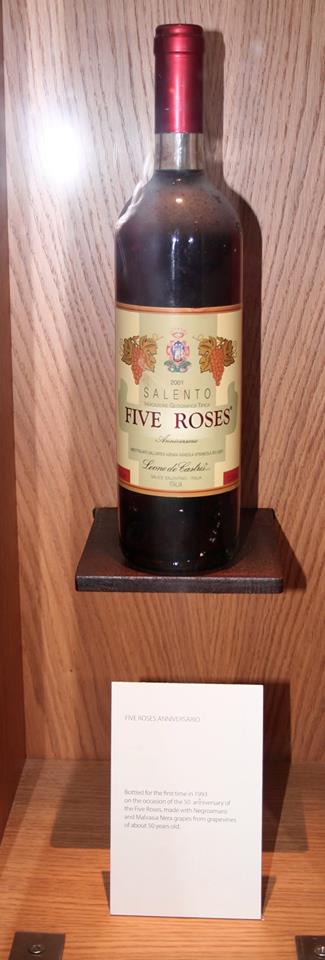 Altro grande merito di questa famiglia è la primogenitura dell’imbottigliamento del primo rosato in Italia, con il “Five Roses” storica etichetta che vede la nascita nel 1943, quando il generale Charles Poletti, commissario per gli approvvigionamenti delle forse alleate voleva un vino dal nome anglofono e, visto che i vigneti si trovano in una contrada chiamata “Cinque Rose” venne facile dargli il nome che ha esportato in tutto il mondo l’orgoglio salentino a base di Negroamaro; questo vino fu imbottigliato nelle bottiglie della birra riciclate dai consumi delle truppe americane a brindisi visto che le vetrerie del nord erano in mano tedesche: però, che storie affascinanti ci regala il vino…oggi il Five Roses è prodotto anche nella versione anniversario (da vecchi vigneti) e metodo classico.