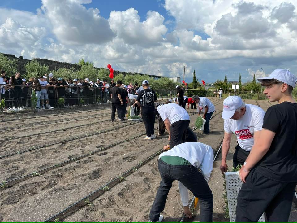 Si è svolto presso “Gli Orti della Musica” a Sarno – l’oasi agricola e culturale dell’azienda Gustarosso – l’evento “Piantalo!”, ideato da Paolo Ruggiero, un’iniziativa che ha unito agricoltura, identità territoriale e partecipazione collettiva attorno al gesto simbolico del trapianto delle piantine di pomodoro San Marzano. Nel corso della mattinata, cittadini, operatori, studenti, appassionati e rappresentanti del territorio si sono ritrovati per mettere a dimora le giovani piantine, che nei mesi estivi daranno vita ai celebri frutti, poi raccolti a mano dagli agricoltori locali. Il cuore dell’iniziativa è stato il laboratorio “Aiutami a trapiantare!”, dove i partecipanti, guidati da esperti, hanno potuto sperimentare in prima persona l’atto agricolo del trapianto, riscoprendone il valore non solo produttivo, ma anche culturale e simbolico. Accanto all’attività pratica, “Piantalo!” ha ospitato la tavola rotonda “Il Filo Rosso”, moderata dal professore Vincenzo Salerno, che ha visto la partecipazione di numerosi ospiti di rilievo: il fondatore di Gustarosso Edoardo Angelo Ruggiero, il sindaco di Sarno Francesco Squillante, il giornalista e scrittore Gabriele Bojano, i docenti Michele Scognamiglio, Stefano Grazzini, Rosario Pellegrino, Daniela Pergreffi, Emma Tortora e Carmine Pinto. Un confronto intenso e appassionato, dedicato al ruolo del pomodoro San Marzano come elemento fondante dell’identità territoriale, volano turistico e simbolo di una cultura agricola che ancora oggi definisce il paesaggio e l’economia della Valle del Sarno. Durante il suo intervento, Edoardo Angelo Ruggiero ha lanciato un messaggio forte e profondo: “Prima di tutto, desidero ringraziare i ragazzi delle scuole che oggi hanno partecipato attivamente.